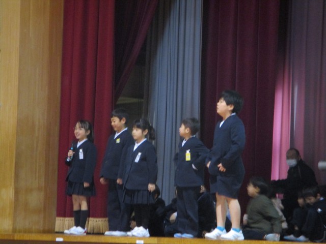 今日は、あたらしい1年生をむかえる集会を行いました。「なかよくなりたい」「かっこいい1年生の姿を見せたい」と一人一人が目当てをもち、この日に向けて練習に取り組んできました。今日は、新しい1年生を前に、よい緊張感の中、はきはきと台詞を言う姿がすてきでした。