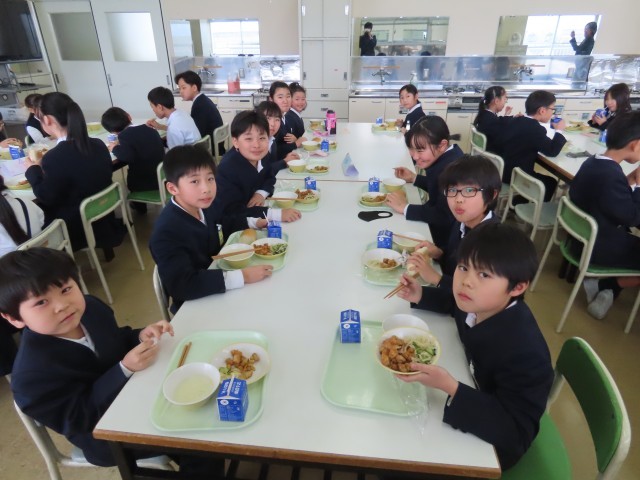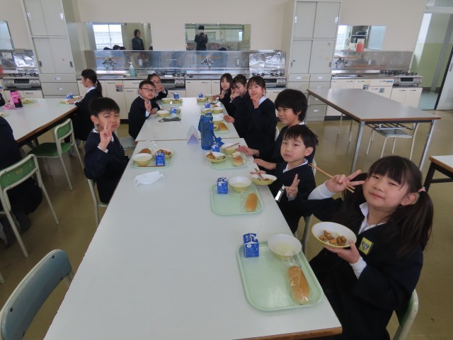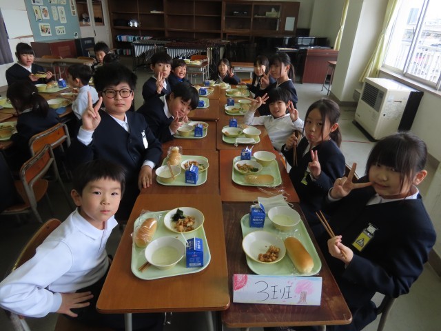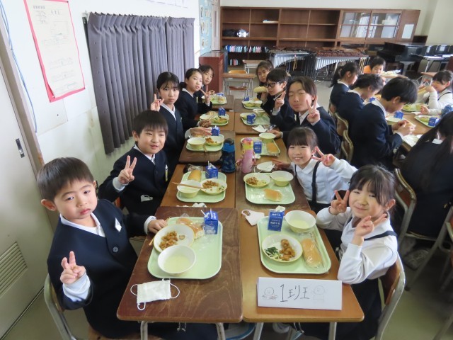 卒業を祝う週間2日目の今日は、1年生と6年生のふれあいタイムや白団のなかよし班会食、お祝い放送がありました。