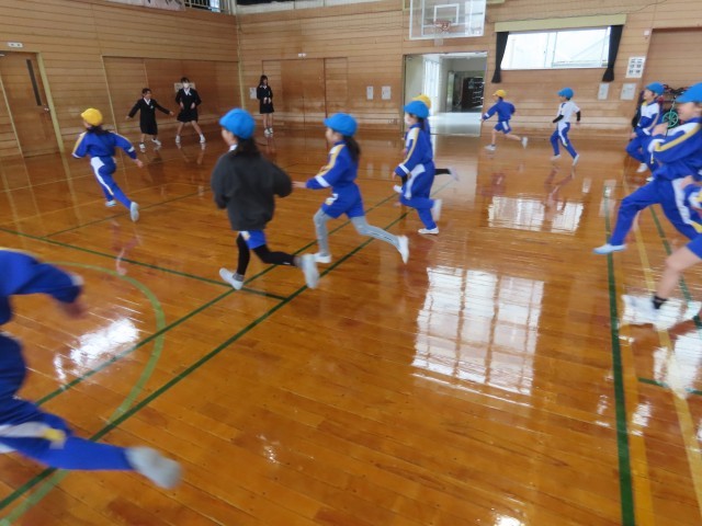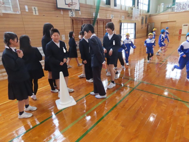ふれあいタイムでのけいどろは、2年生が追いかけ、6年生が逃げるというルールでした。結果は、人数の多さと体育館という地の利を生かし、2年生が6年生を圧倒しました。2年生に圧倒される6年生の姿は、とても新鮮でした。