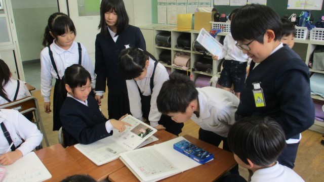 まとめたアルバムを隣のクラスの友達同士で見せ合いました。