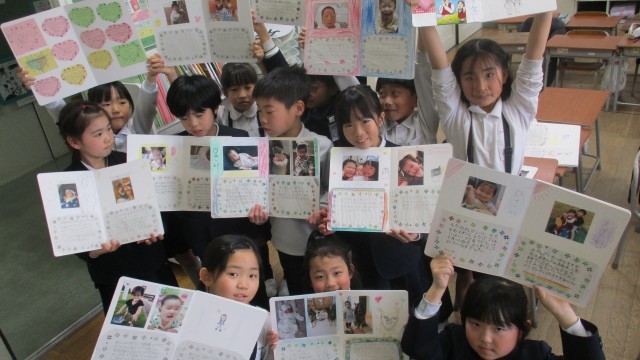 生活科「わたしたんけん」では生まれた時から2年生までの自分についてアルバムにまとめました。