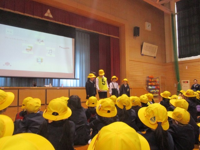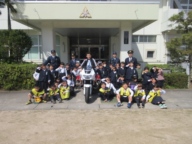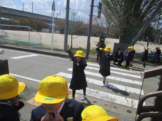 1年生と2年生が一緒に、警察署や地域の方から交通ルールやマナーについてたくさん教えていただきました。自分の目や耳で確認して横断歩道を渡るなど、実地練習で安全意識を高めました。
