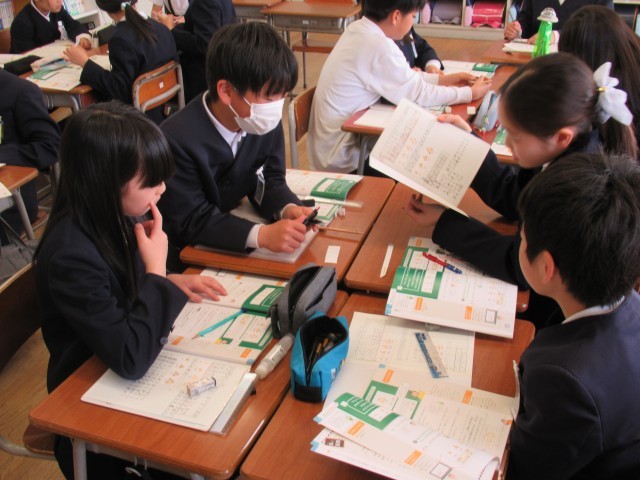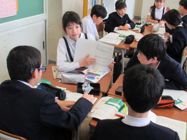 算数科の学習では、グループで考えを聴き合いました。