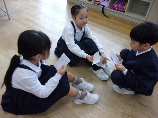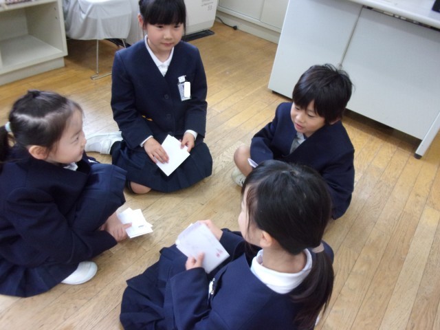 今日は、友達に名前と好きなものを紹介し、カードを交換してとても嬉しそうでした。
