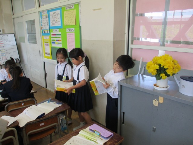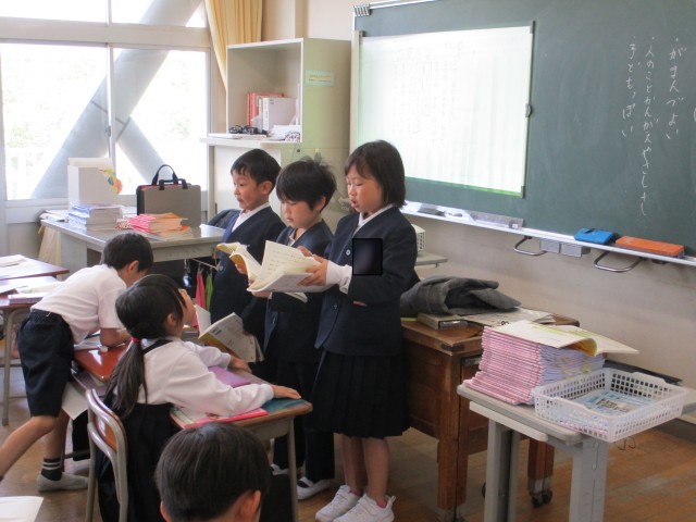 「ふきのとう」の登場人物の人物像や、状況を考えて、グループごとに音読に取り組みました。声の大きさや、言い方に色々な工夫が見られました。