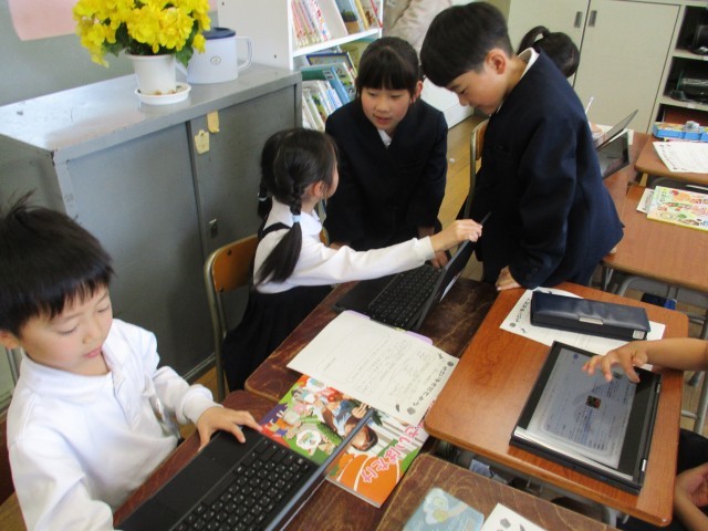夏に収穫できる野菜について、クロムブックや教科書を使って調べました。調べた結果、キュウリやオクラ、ピーマン、ズッキーニ等が出ました。みんな野菜を育てたいという気持ちが高まっていました。5月中には、1人1苗を畑に植えて育てていく予定です。