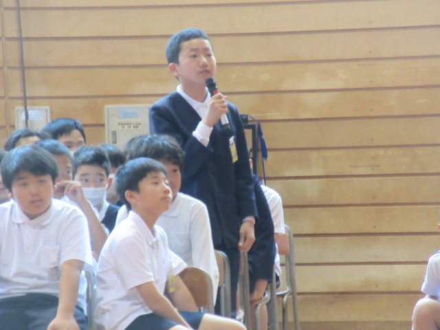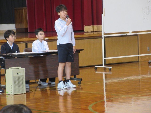 6年生が考えた3つの案をもとに桜っ子全員で話し合い、児童会のめあてを決めました。