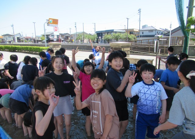 今年もグラウンド田でおいしいお米を育てようと、米作り計画がスタートしました。まずは、田植えに向けて代掻きを行いました。地域の方のサポートのもと、肥料を混ぜたり、固まった土を砕いたりして、土をならしました。子供たちは、どろどろになりながら楽しそうに活動していました。終わった後は、「田植えが楽しみだな」と次の活動を待ちわびる声が聞こえてきました。