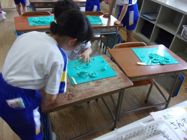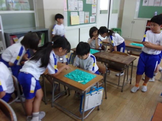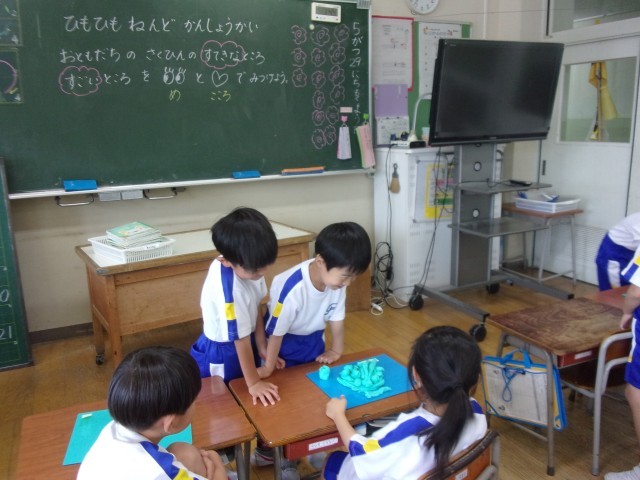 図画工作科「ひもひもねんど」の作品鑑賞会をしました。