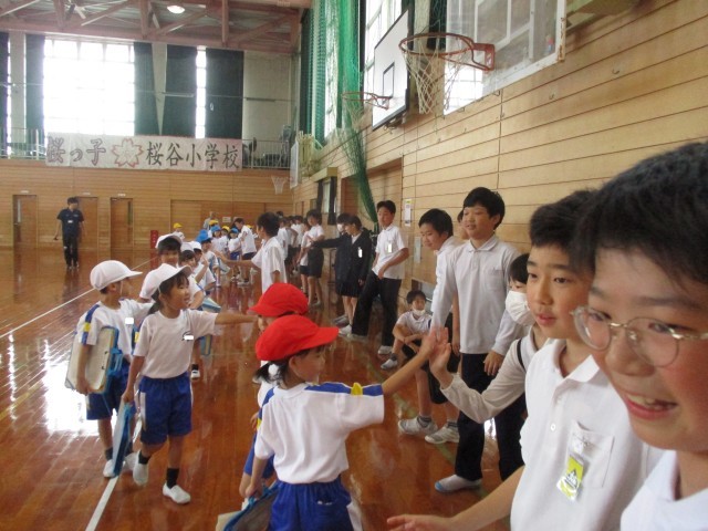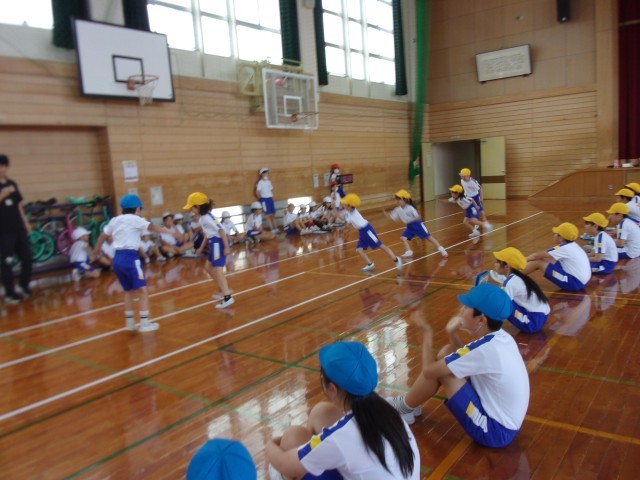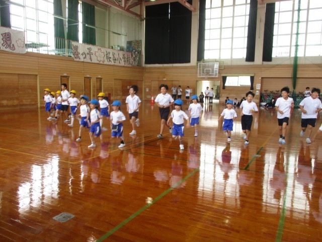 体育科では、スポーツテストをしました。6年生がお手本を見せてくれたり、やり方を教えてくれたりしました。そのおかげで、練習のときよりもよい記録が出て、1年生の子供たちはとても喜んでいました。6年生さん、ありがとうございました。