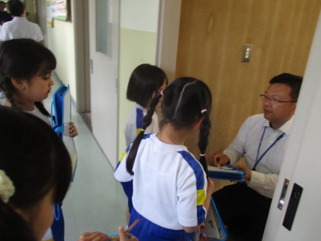 「質問が初めてできて嬉しい」「たくさんサインをもらおう」など、学級での発表から段々インタビューに慣れてきて、学校探検を楽しんでいる様子が伝わってきました。