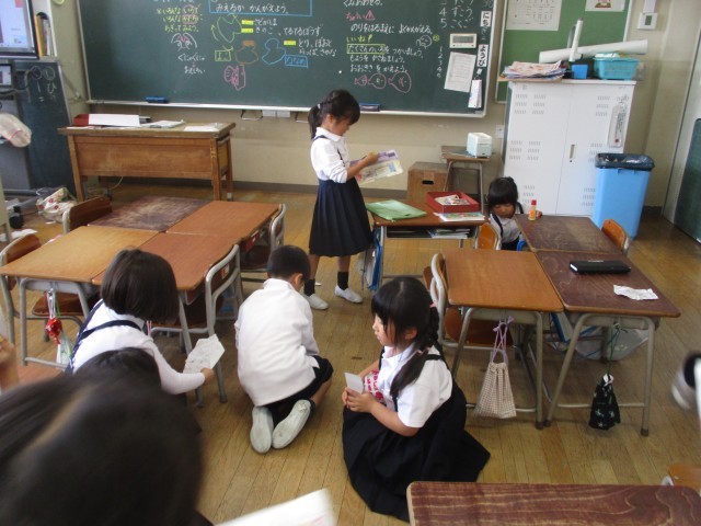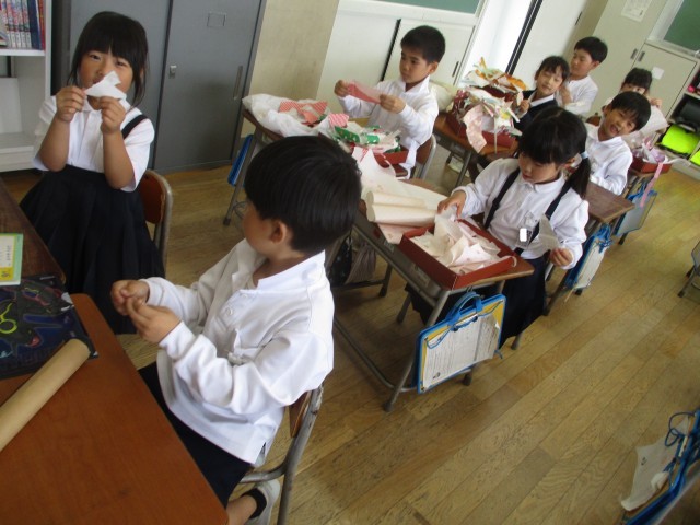 図画工作科では、「やぶいたかたちから うまれたよ」の学習をしました。やぶいた形から何を思いつくか、楽しみながら取り組んでいました。