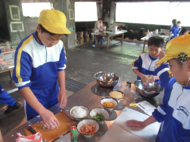 最初の活動は、野外炊飯です。