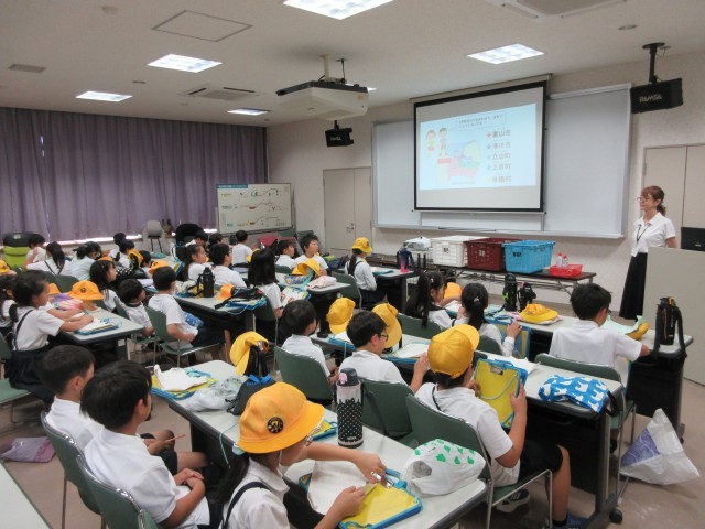 社会科で学習した浄水場や、これから総合的な学習で勉強する環境に関わる家庭ゴミの処理の仕方やリサイクル方法について、たくさんの話を聞きました。子ども達は自分たちが気になったことを質問し、ワークシートに書ききれないくらいほど一生懸命にメモをとっていました。昼食はおいしいお弁当をありがとうございました。