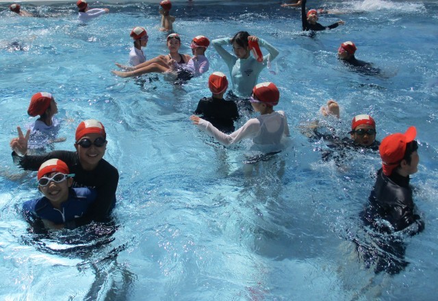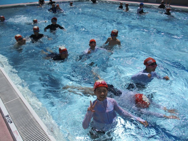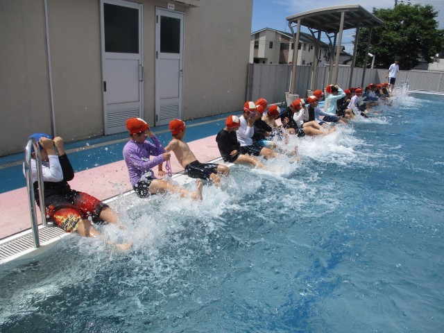 今日からプールの学習が始まりました。プールに入るときの約束を確認し、安全に気を付けて楽しみました。みんなで協力して大きな水の渦をつくったり、友達と水の中で遊んだりして、あっという間に時間が過ぎました。