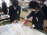 家庭科では、エプロンづくりに取り組んでいます。 今日は、布を裁つ作業やしつけ...