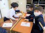 生活科の時間では、紙コップやストローを使って風車を作りました。風が冷たかったり...
