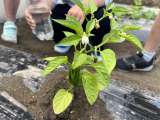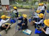 一人一鉢育てている野菜の苗がすくすく成長し、大きくなってきました。「支柱を立て...