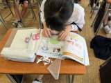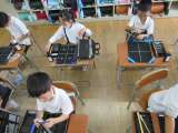 習字の準備、片付けの仕方の学習をしました。毛筆の学習を楽しみにしている子供たち...