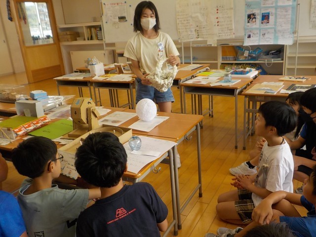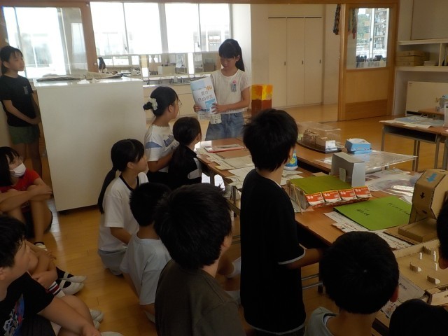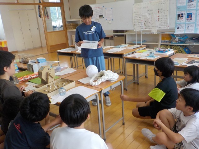 さまざまな作品があり、子供たちは興味深く友達の発表を聞いていました。