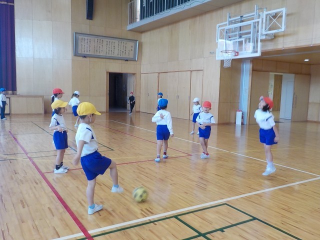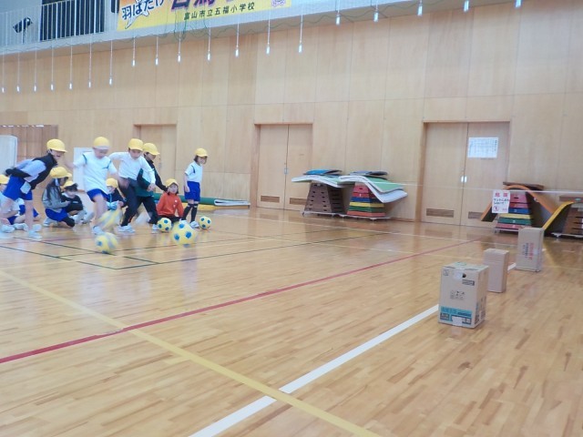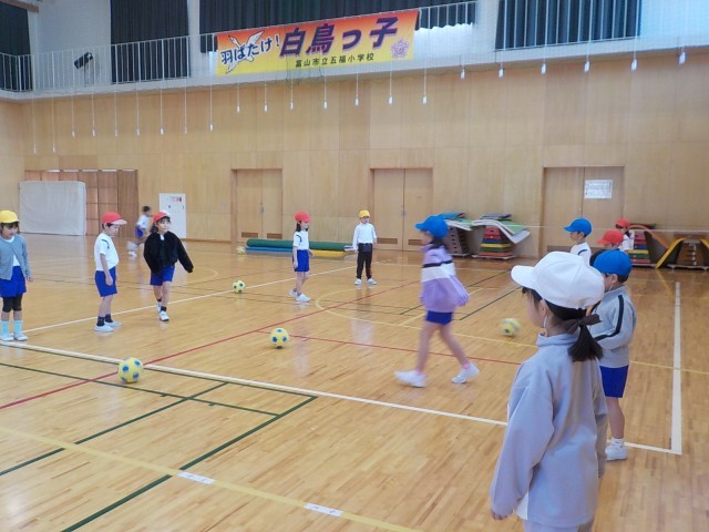 今週から、体育科では、ボールけりの学習が始まりました。友達と楽しくパスをつないだり、段ボールの的を狙って蹴ったりしました。うまくできるコツを互いに伝え合い、少しずつ上達している子供たちです。