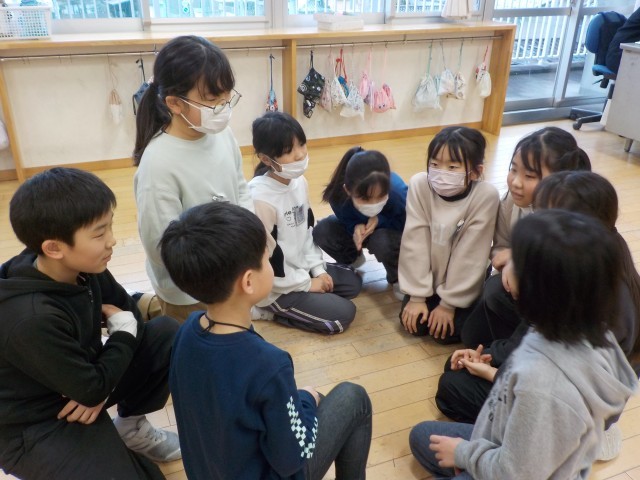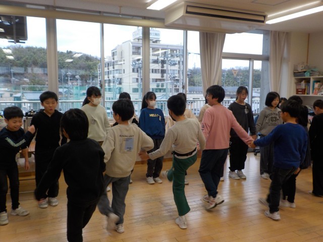 みんなで楽しく はないちもんめをしました。子供たちは、「どの出し物も楽しかった」「学級の仲が深まったと思う」とうれしそうな様子でした。