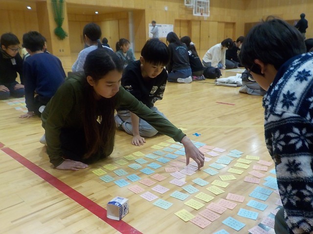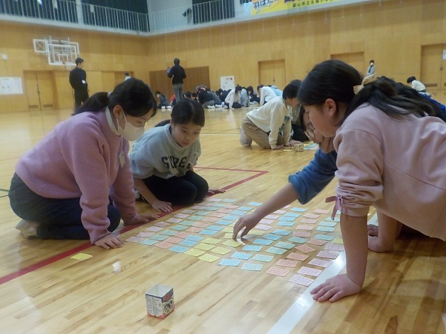 百人一首大会を行いました。上の句で勢いよく取る姿や、友達と楽しく取り組む姿が見られました。