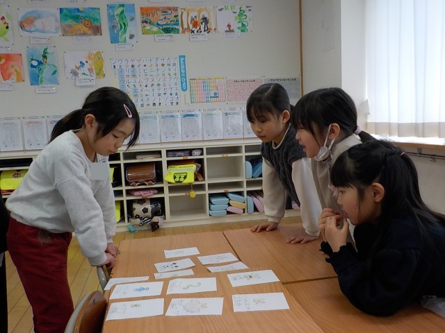 国語科では、ものの名前をたくさん集めて、みんなでおみせやさんごっこをしました。お店の人とお客さんに分かれて、買いたいものをお店の人に伝えたり、おすすめのものをお客さんに紹介したりしながら、楽しく学習しました。