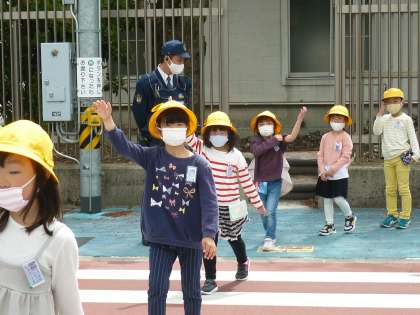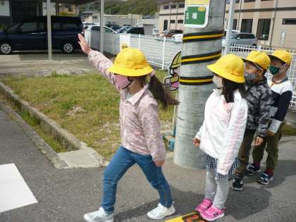 交通安全教室では、自分の命を自分で守るため、目と耳でしっかりと確かめながら歩く練習をしました。下校時には、今日学んだことを意識しながら歩きました。