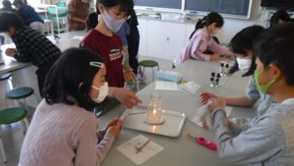 理科では「物の燃え方と空気」の学習をしています。今日は、「集気瓶の中でろうそくの火が燃え続けるにはどうすればよいのか」について、みんなで考えた方法を試しました。しっかりときまりを守って実験を行い、燃え続けるには空気が絶えず入れ替わることが必要だと理解することができました。