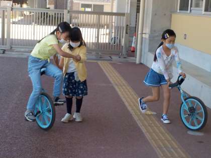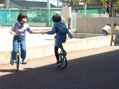 休憩時間、決まって一輪車乗り場にやってくる子供たちがいます。