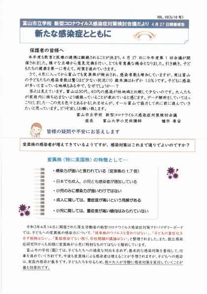 富山市立学校新型コロナウイルス感染症対策検討会議だよりVOL.10