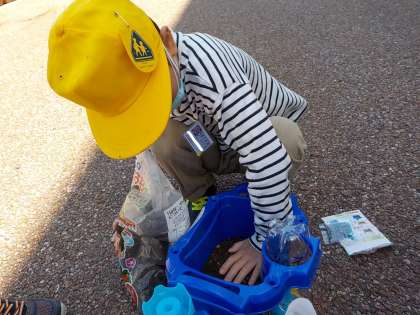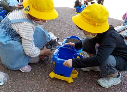 友達と協力しながら、あさがおを植えました。「種のへそから芽が出てくるのかな。」「いつ花が咲くか楽しみだな。」と期待を膨らませている様子が見られました。