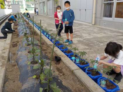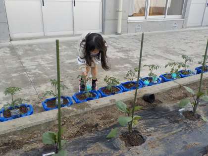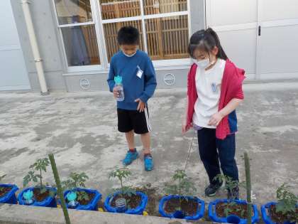 ペットボトルに水を入れ、畑へとまっしぐらにやって来た2年生。