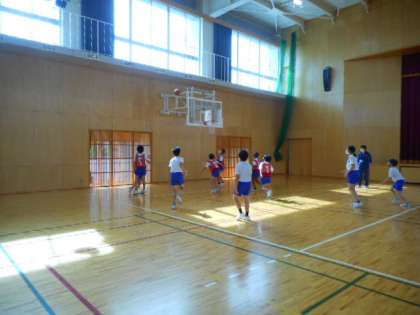今日は、1学期2回目のクラブ活動がありました。体育館では、ビーチバレーボールクラブ、バスケットボールクラブが活動しています。学年に関係なく、楽しく活動しました。