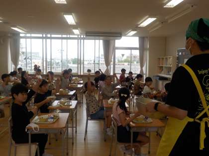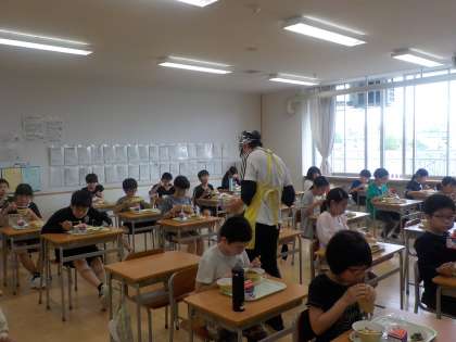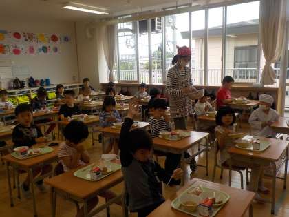 おかわりがほしい人は、手を挙げて先生に知らせます。