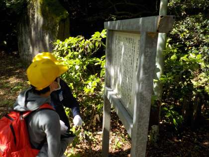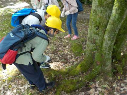 学校から見ただけでは分からない、丘陵の中の様子に興味をもち、虫や建物、植物等、様々なものを発見しました。