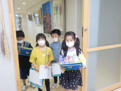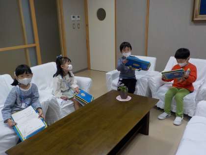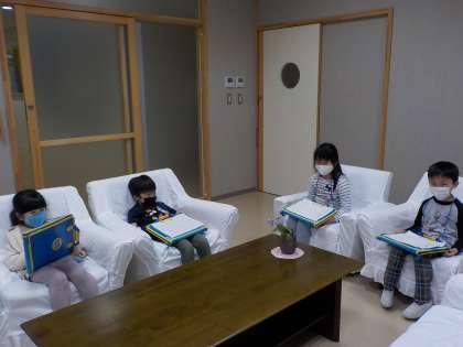 校長室のソファに座ると「わあ、ふわふわだ」とうれしそうにしていました。