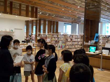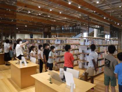 普段は入ることのできない「書庫」の様子や、富山市立図書館の利用の仕方について、教えていただきました。「たくさんの本が並んでいてびっくりしたよ。またじっくり読みに行きたいな。」と話していました。