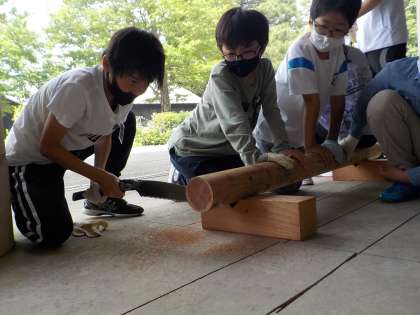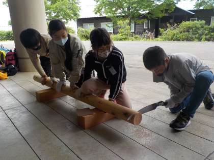 丸太をみんなで押さえるなど、協力しました。