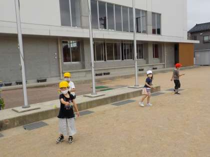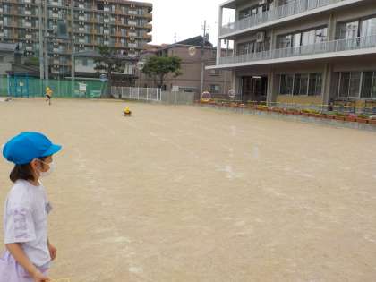 生活科の学習で、しゃぼん玉遊びをしました。感染症対策のため、ポイを手にもって動かし、しゃぼん玉をつくりました。縦に動かしたり、くるっと回って横に動かしたりして、大喜びの子供たち。