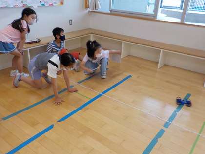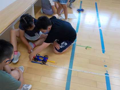 算数で習った巻き尺を駆使して、車がどれだけ進んだのかを上手に測ることができました。