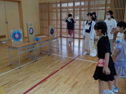 6年生が1年生のためになかよし集会を開いてくれました。グループごとに新聞じゃんけんや的当てなどのゲームを楽しみました。たくさんの笑顔があふれ、「もっと6年生と仲良くなりたい。」という思いをもちました。
