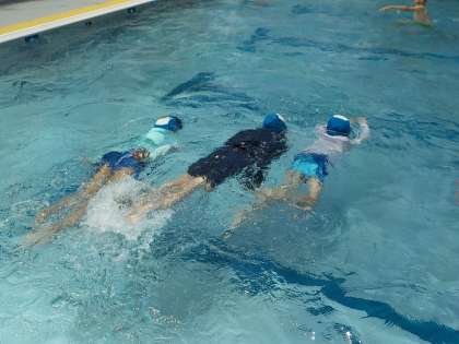 とても楽しみにしていた水泳学習。水中ジャンケンをしたり、友達と競争したりするなど、久しぶりに友達とプールに入ることができ、とても嬉しかったようです。