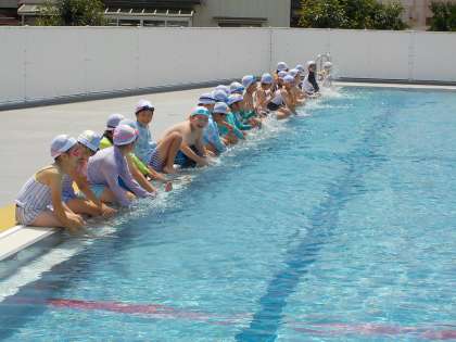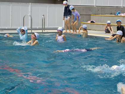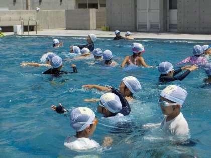 だんだん水に慣れてきました。笑顔いっぱいで楽しんでいます。