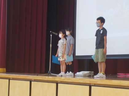 終業式後、代表児童が「1学期がんばったこと」を堂々と発表しました。
