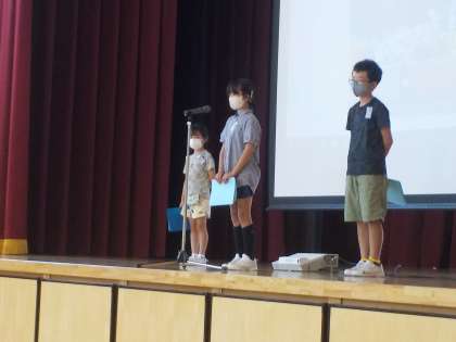 終業式後、代表児童が「1学期がんばったこと」を堂々と発表しました。