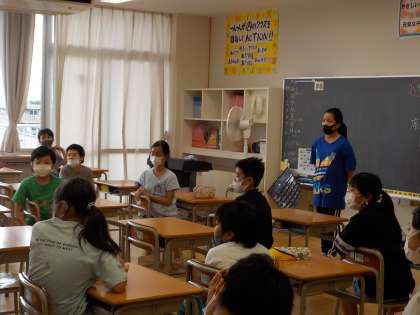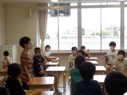 一人のクラスメイトに対して、次々とほめ言葉を言います。