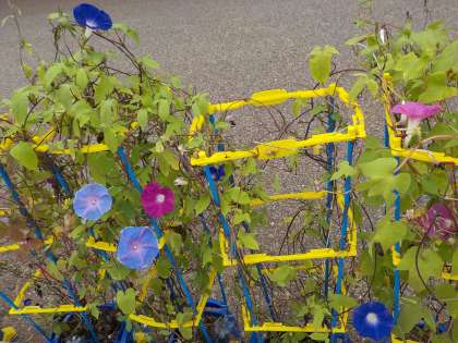 1年生が育てているアサガオは、まだ美しい花を咲かせています。
