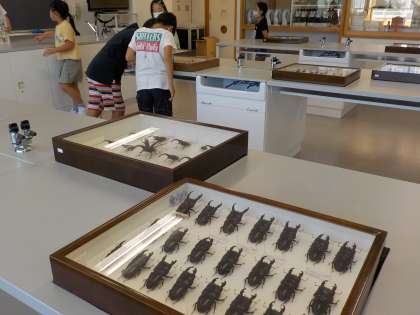 呉羽丘陵で採取したクワガタの標本も多数あります。